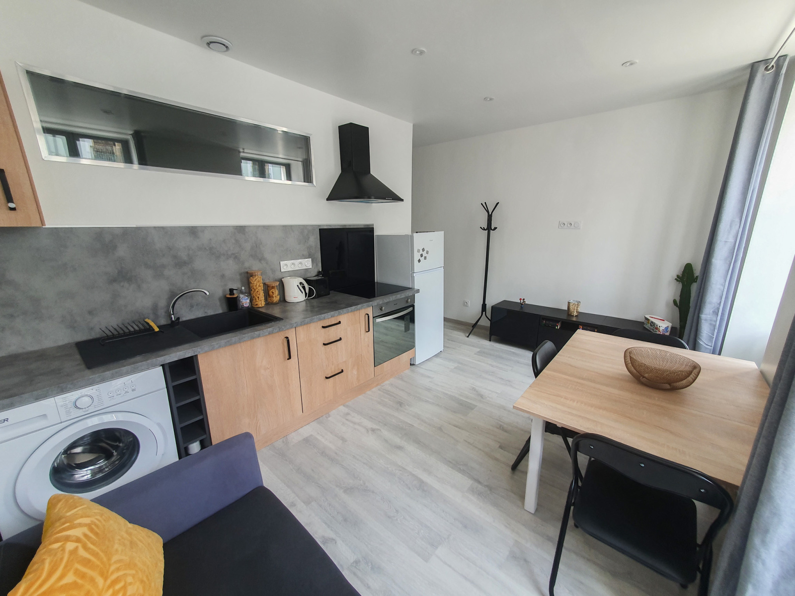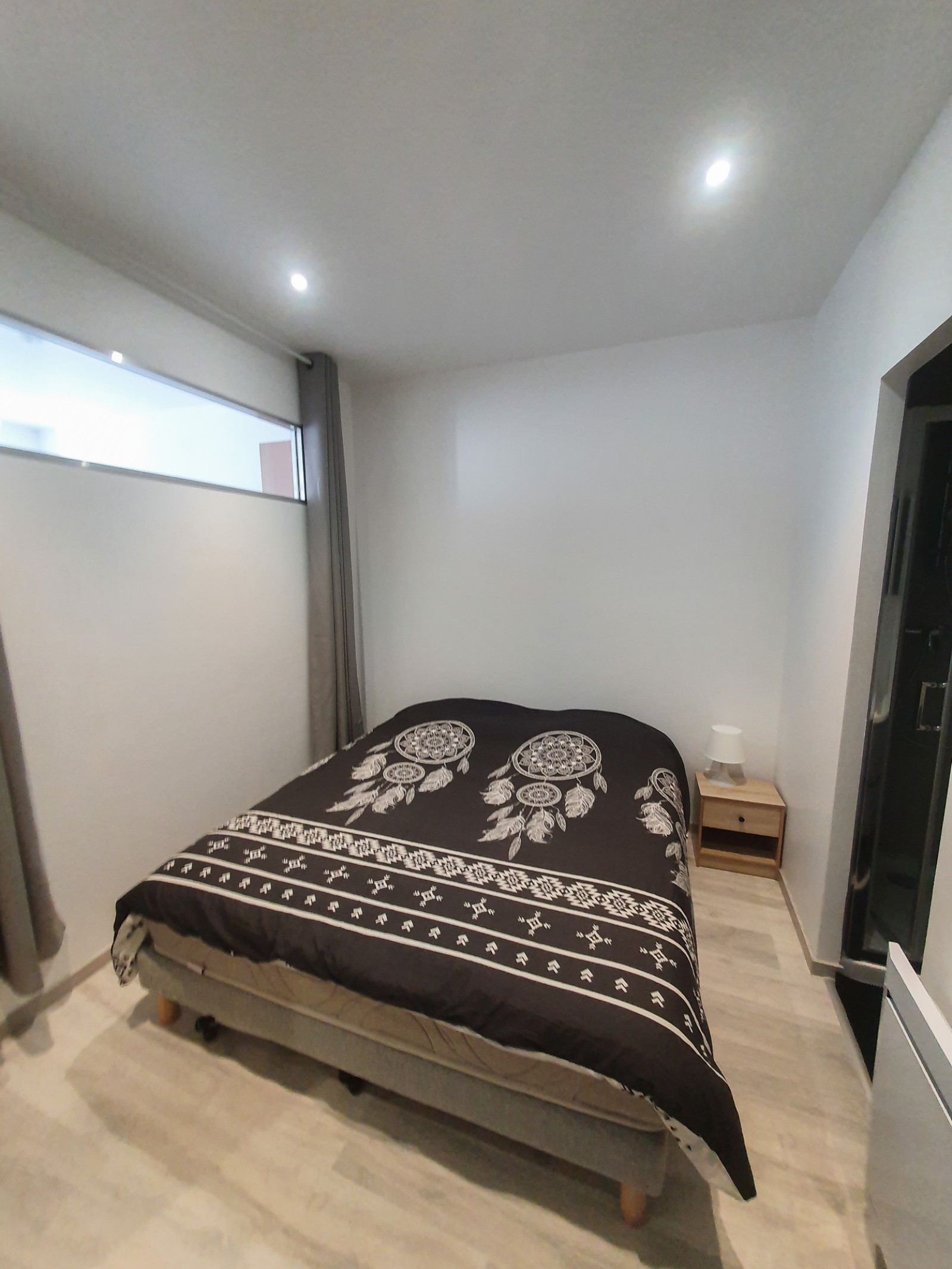 Il se compose d’un dégagement d’entrée, d’une salle d’eau avec WC, d’un salon-séjour lumineux avec cuisine équipée, d’une chambre (sans fenêtre) ainsi que d’une cave.
