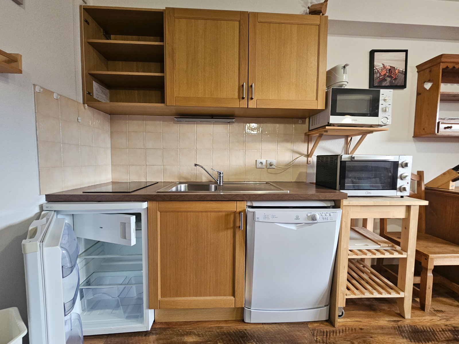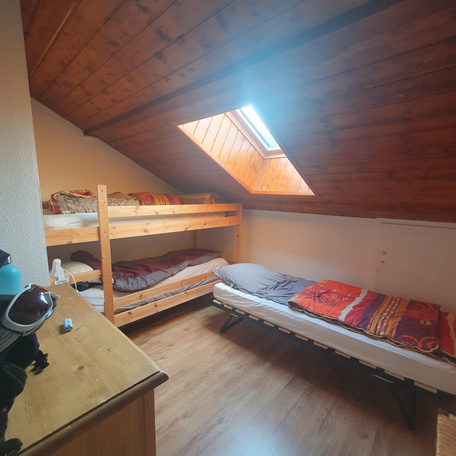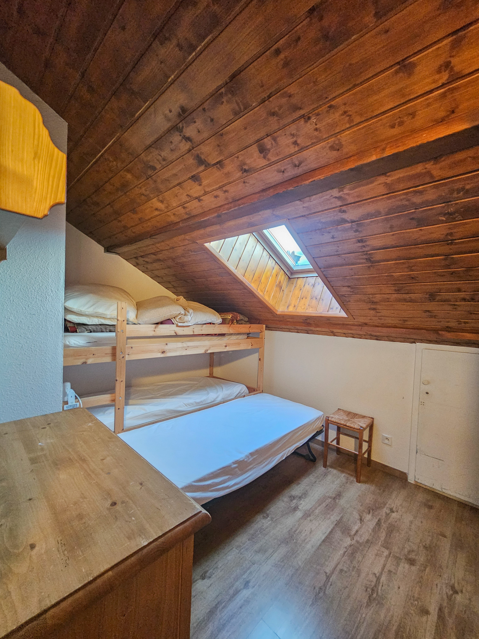 Fonctionnel et chaleureux, il offre un hall d’entrée, un chambre cabine (2 lits superposés), un WC indépendant, une salle d’eau, ainsi qu’une belle pièce de vie à l’ambiance chalet avec cuisine ouverte.