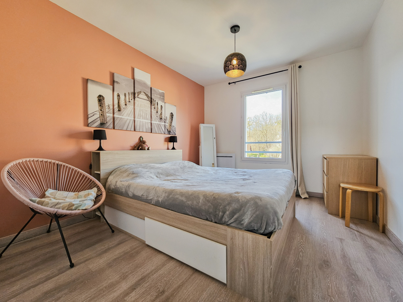 À l'etage, un grand dégagement amenagé avec un bureau, une salle d'eau avec douche à l'italienne et deux belles chambres avec rangement dressing.