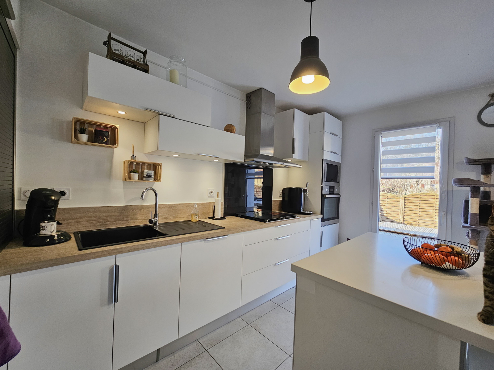 Au rez-de-jardin, une entrée donnant accès au garage, wc, piéce,buanderie et à la pièce de vie avec séjour et cuisine entièrement équipée.