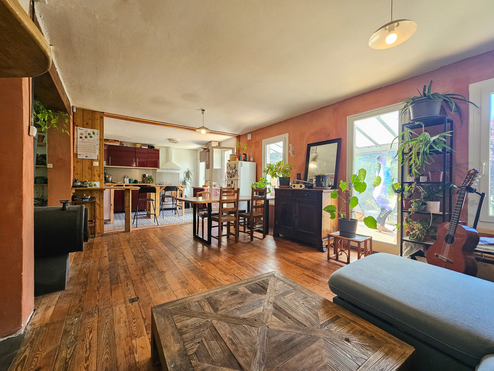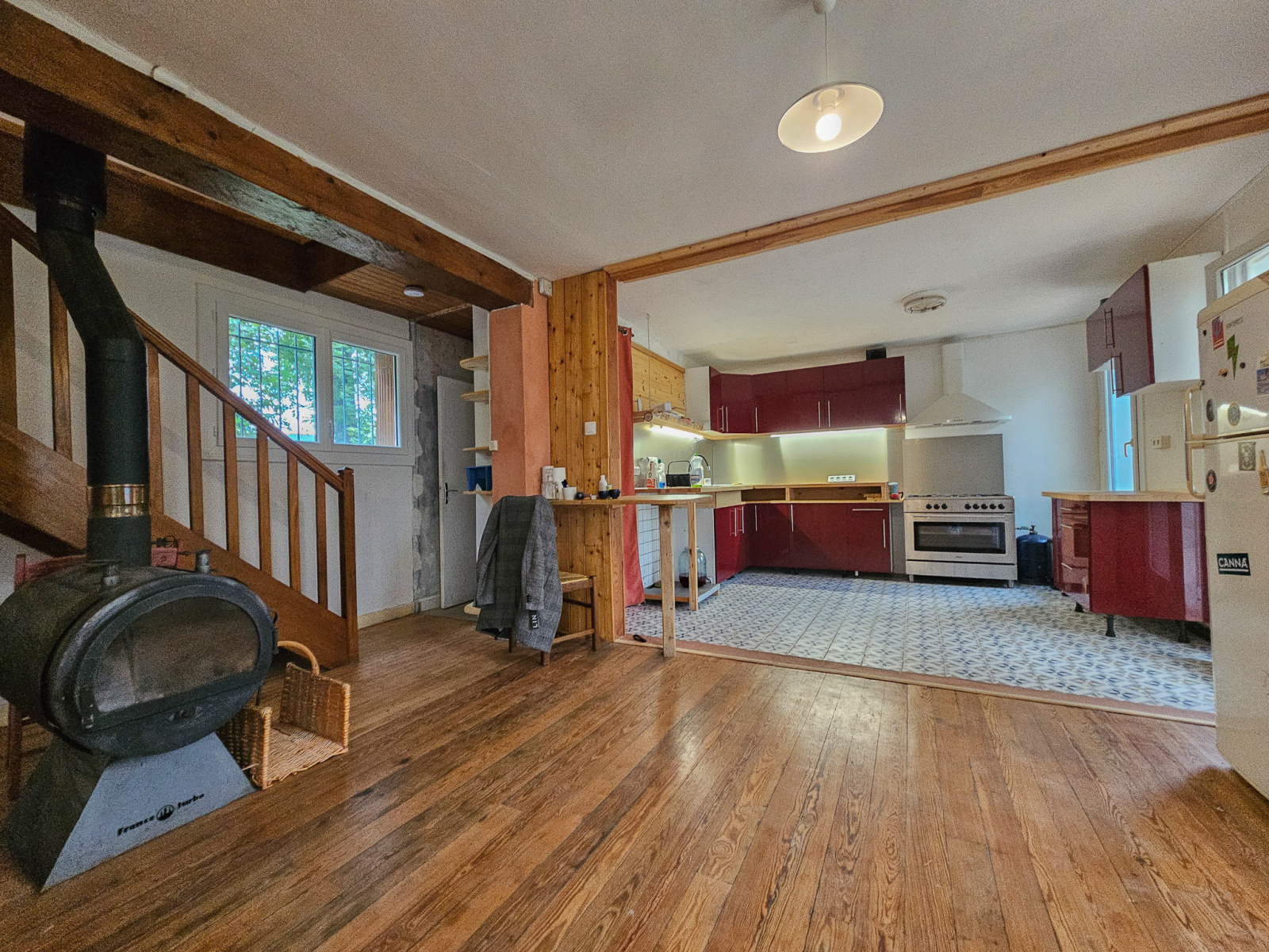 Agencée sur deux niveaux, vous retrouverez une vie de plain pied en rez-de-chaussée, avec une grande véranda, une cuisine équipée, une grande pièce de vie, un cellier, wc et une grande chambre.