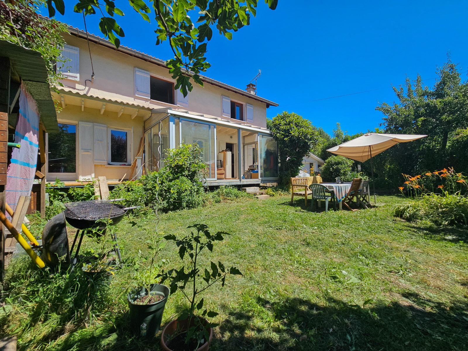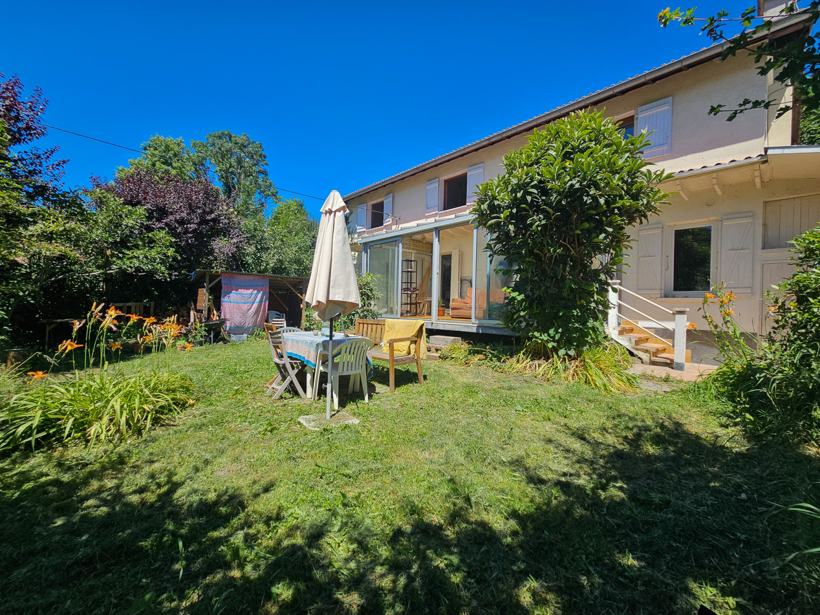 Propriété implantée sur un très joli terrain arboré, sans aucun vis à vis, avec une allée carrossée, terrasse et jardin.