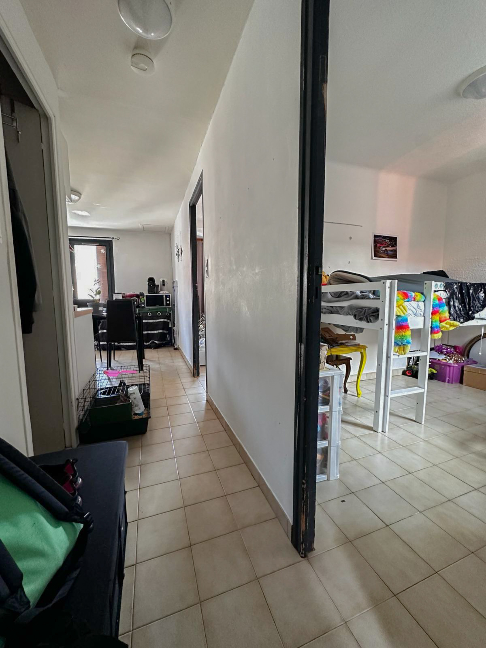 Agencé en un dégagement, une salle d'eau avec Wc, chambre(enfant), cuisine/séjour et chambre.