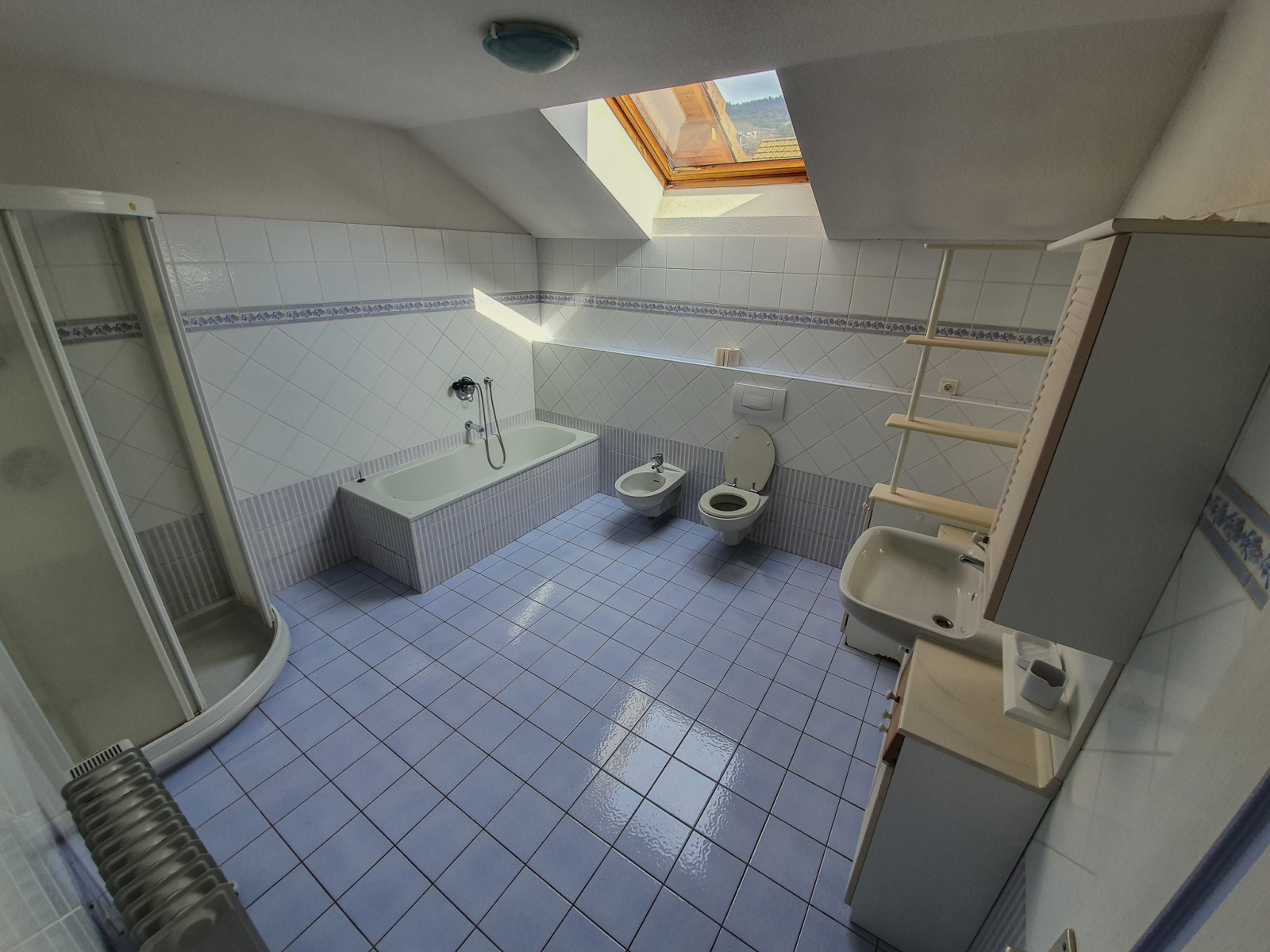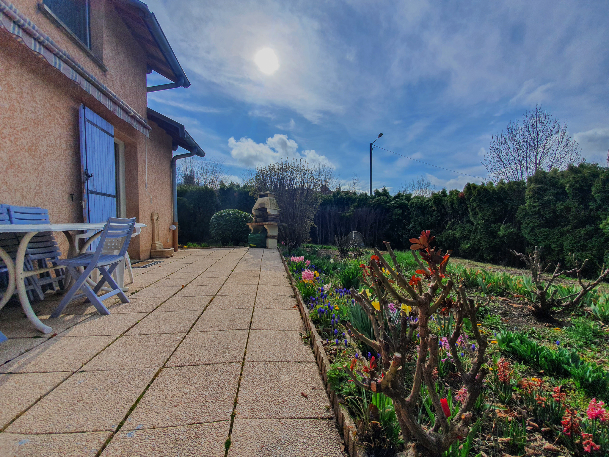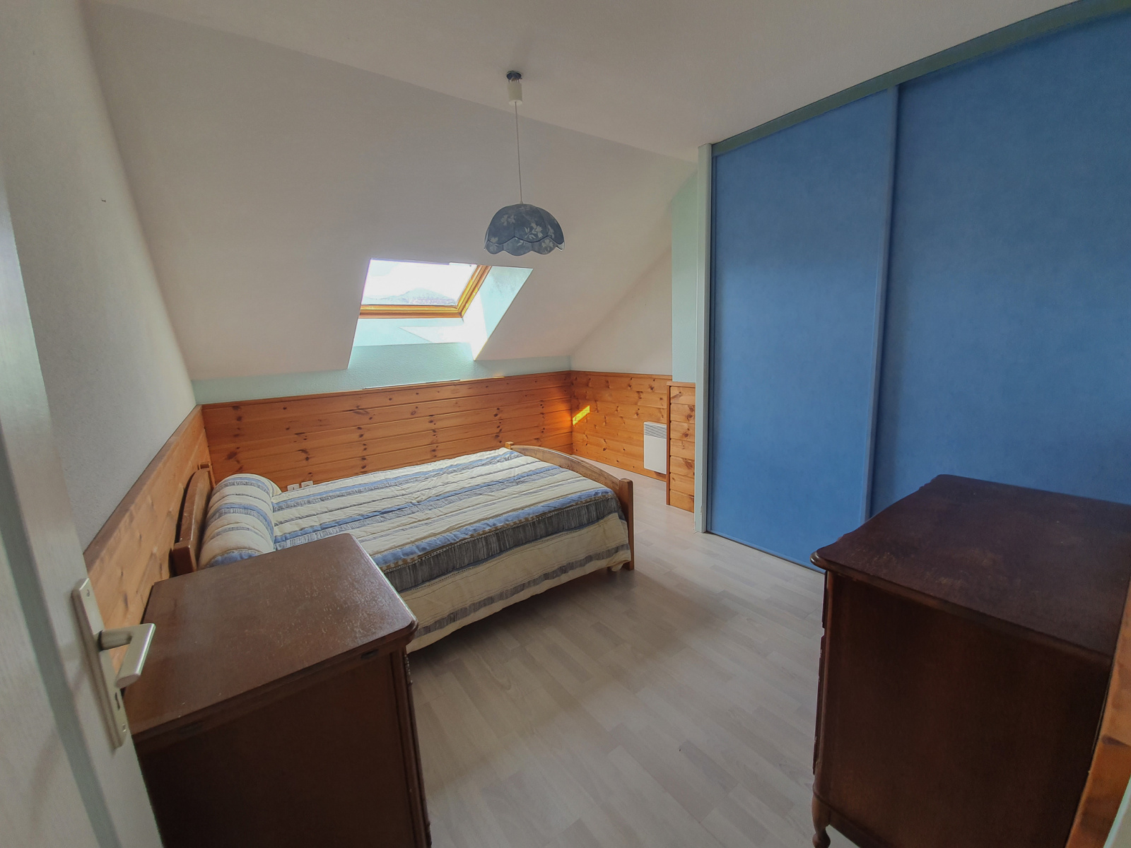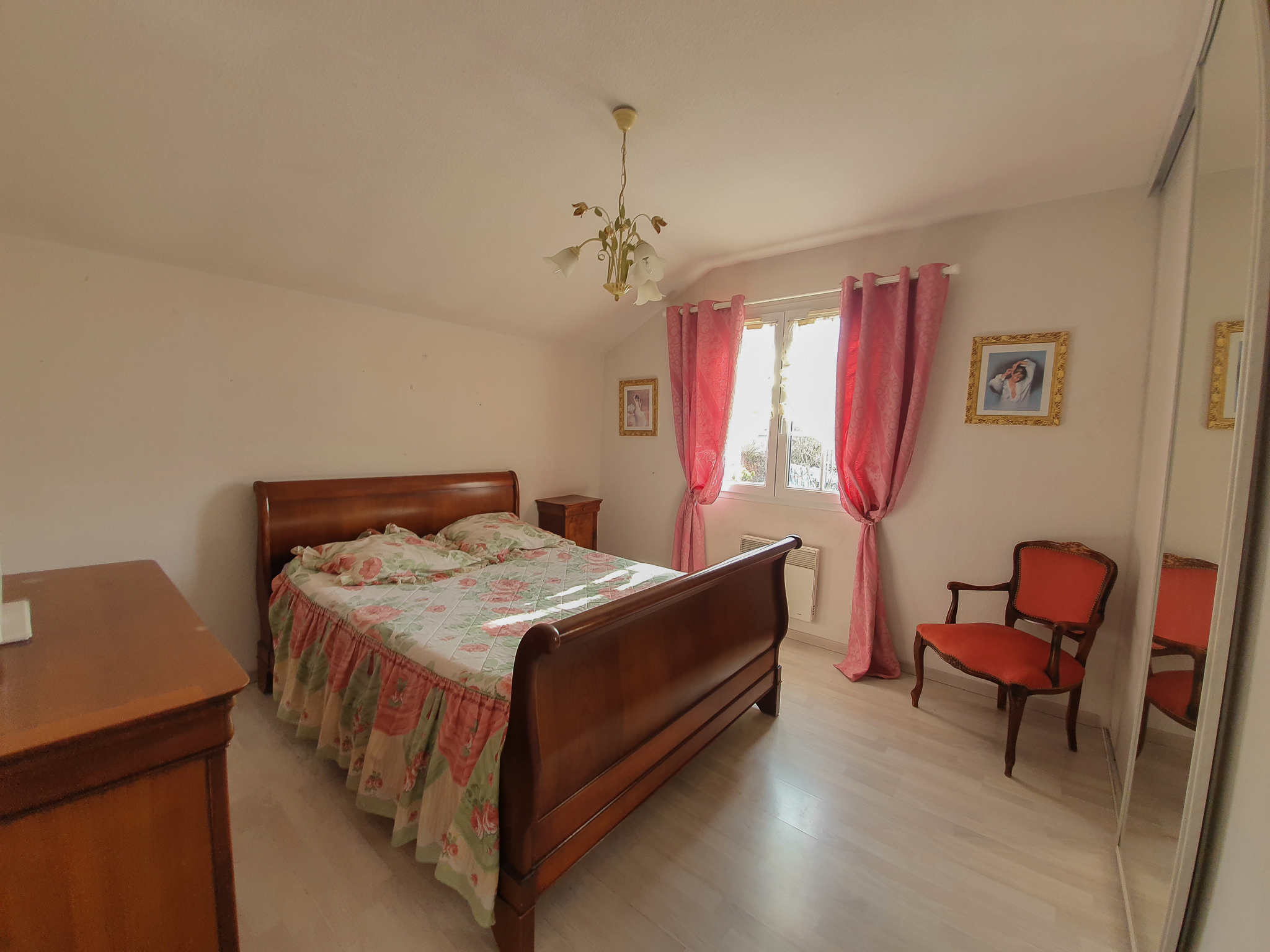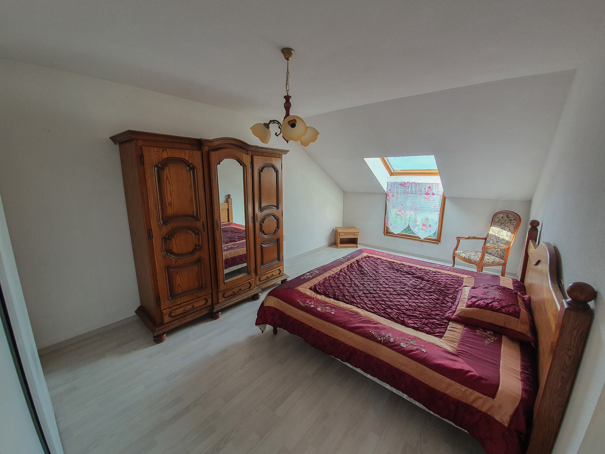 À l'étage, une très grande salle de bains avec douche et baignoire et trois très grandes chambres avec placards.