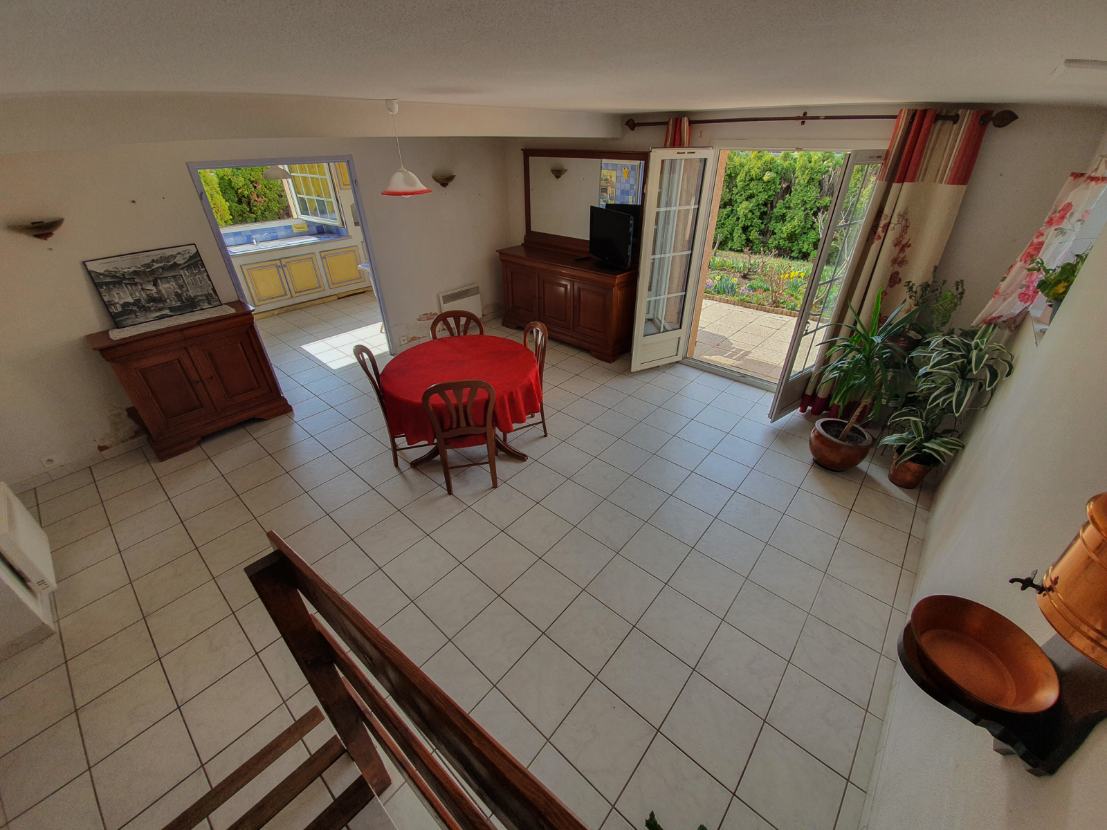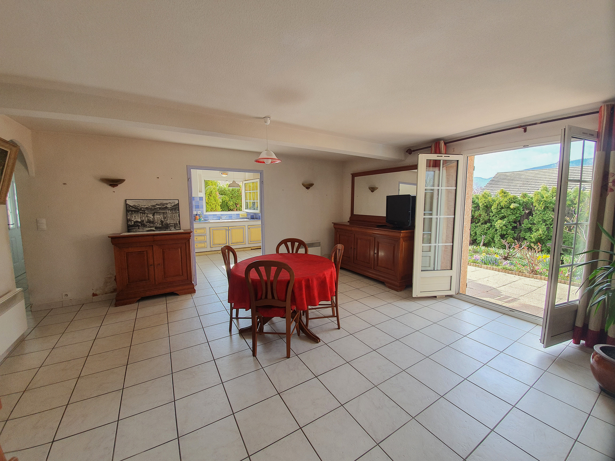 Au rez-de-chaussée, un hall d'entrée, wc individuel, grand salon-séjour, cuisine équipée.