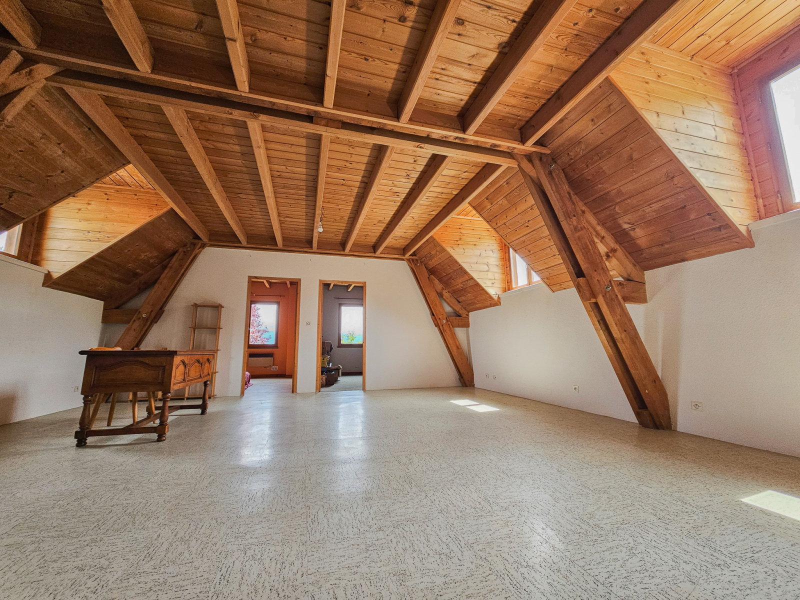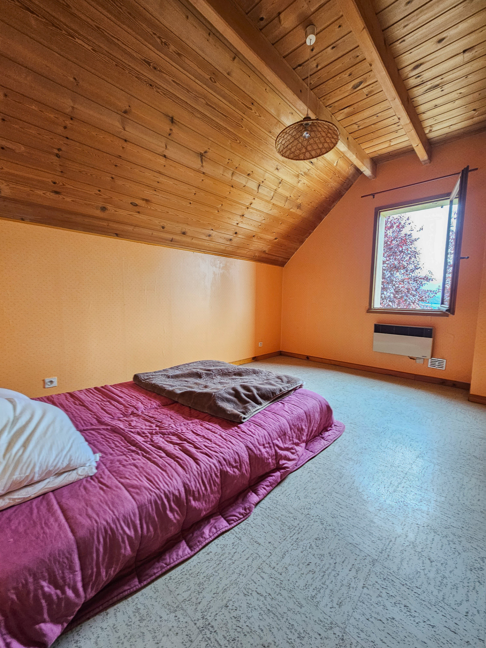 au 1er étage, 4 chambres, dressing, une pièce de vie de + de 40 m², une salle de bain et un wc.
